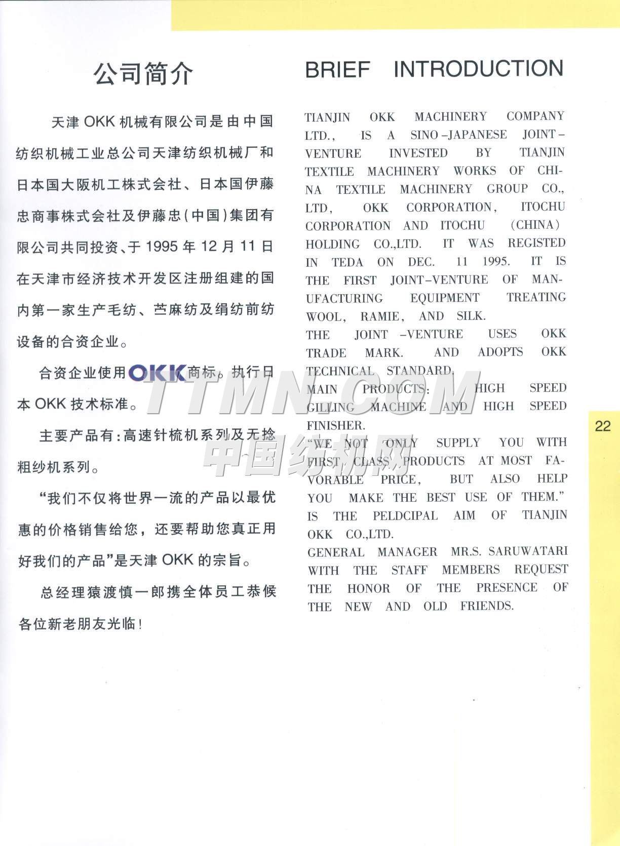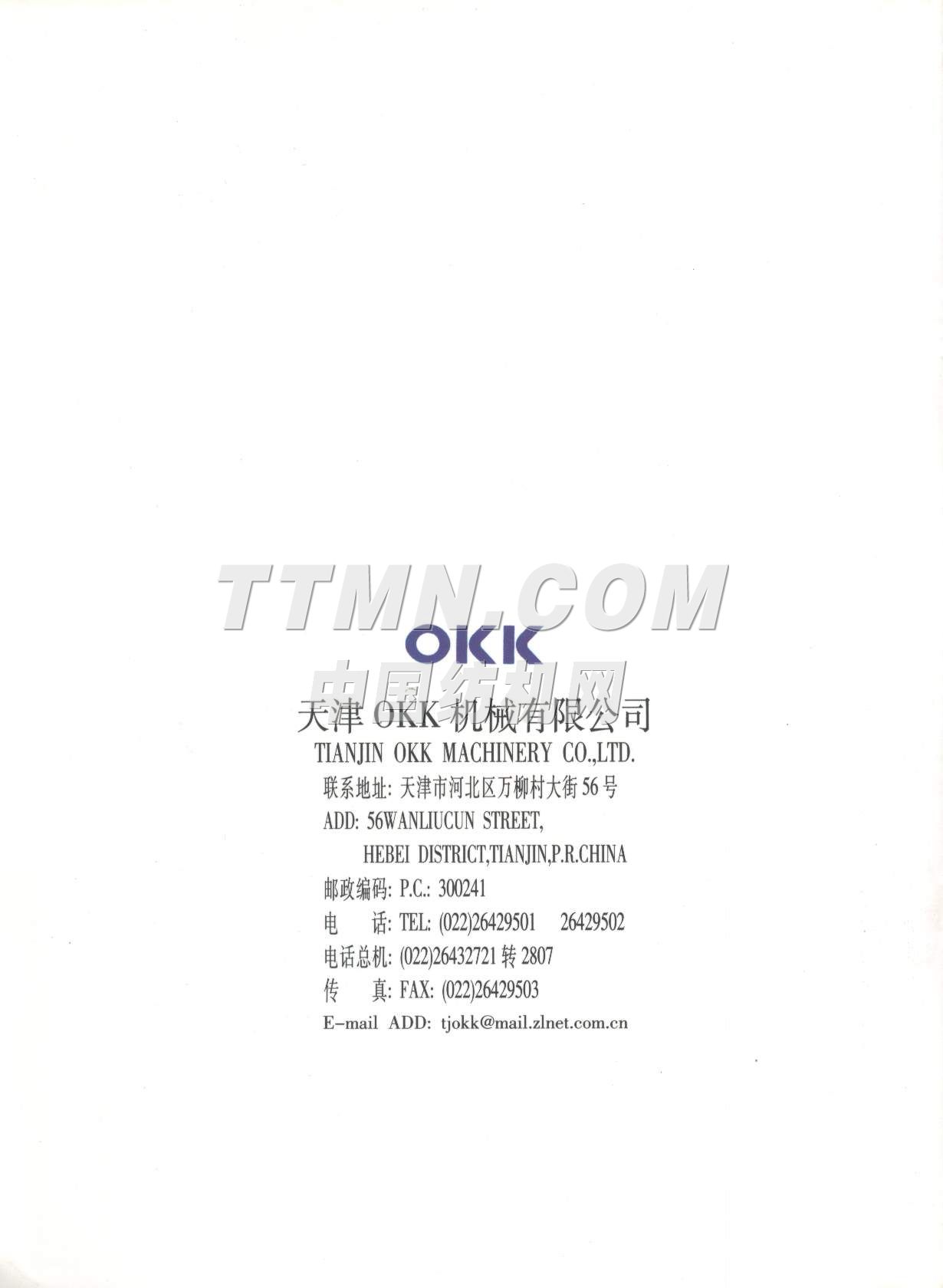 您所在的位置:紡機(jī)網(wǎng) > 紡織機(jī)械樣本庫 > 天津OKK機(jī)械有限公司