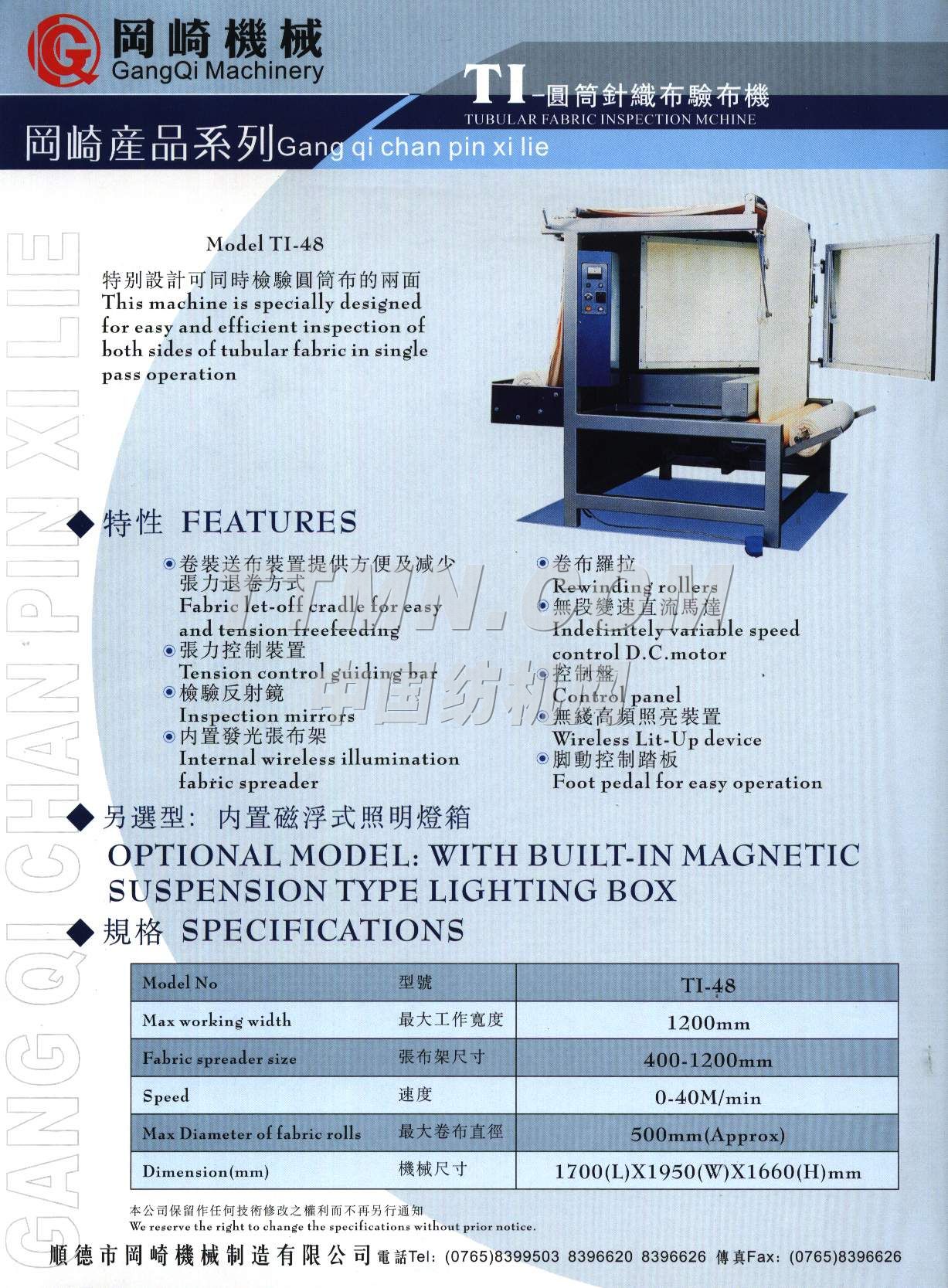 您所在的位置:紡機(jī)網(wǎng) > 紡織機(jī)械樣本庫(kù) > 佛山市岡崎機(jī)械制造有限公司