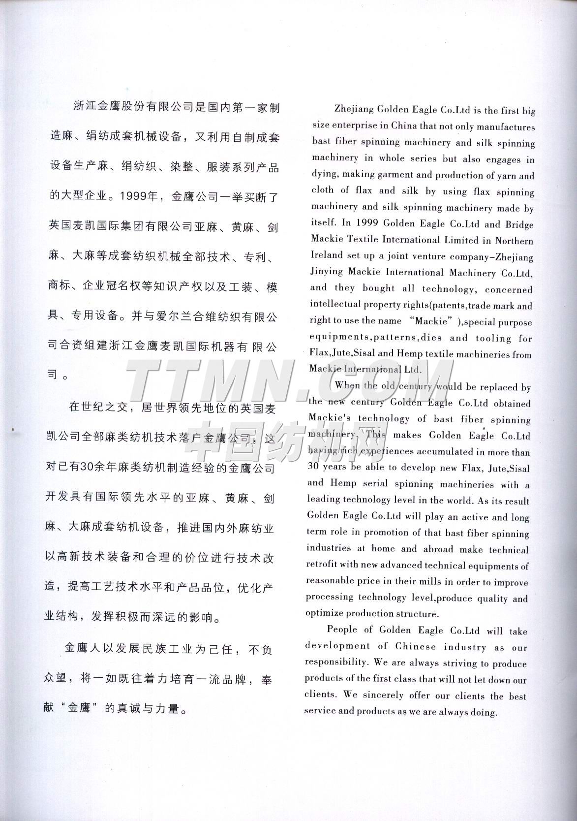 您所在的位置:紡機(jī)網(wǎng) > 紡織機(jī)械樣本庫(kù) > 浙江金鷹股份有限公司