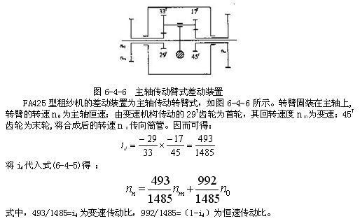 在變速傳動轉臂式差動裝置中,id為恒速傳動比,1-id為變速傳動比。雖然差動裝置的類型不同,但所起的作用是一樣的。由主軸和變速裝置傳來的速度,經(jīng)差動裝置合成后傳向筒管,變速裝置只負擔其中一小部分的轉速,而絕大部分的速度是由主軸來承擔的。
