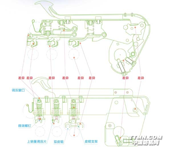 7、后皮輥設(shè)有雙皮輥曲線牽伸,主機(jī)不需要改動(dòng)。