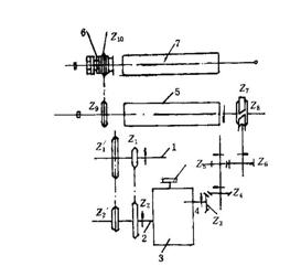1-卷取桿? 2-卷取鉤? 3-卷取棍? 4-保持棘爪? Z1-棘輪? Z2、Z3……Z7-齒輪
