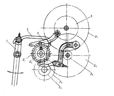 圖10-1? 改變齒輪齒數(shù)調(diào)節(jié)緯密的卷取機(jī)構(gòu)