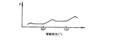 (2)布面游動較大,容易造成斷邊紗。這是由于卷取鉤2拉動棘輪到達(dá)終點之前,保持棘爪4早已落下,造成保持棘爪與棘輪齒根間有一間隙。當(dāng)卷取鉤作反向運動時,棘輪因織物張力而倒轉(zhuǎn)一個角度,于是卷取輥3的卷取運動有圖10-5所示的正反游動特征。