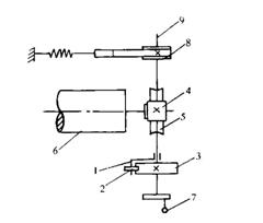 在緞條手帕等織物生產(chǎn)時,為產(chǎn)生一段緯密較大的織物,要求卷取機(jī)構(gòu)有時停止卷取。在織機(jī)上,通過杠桿、吊鏈等有關(guān)的機(jī)構(gòu),使棘爪2抬起,可以實現(xiàn)停卷的目的。因此,這是一種由機(jī)械控制完成時而等量卷取、時而停卷的卷取量可變的卷取機(jī)構(gòu)。