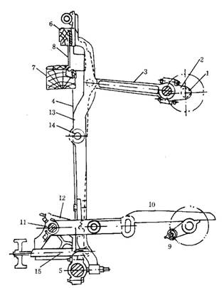 圖9-2? GA611型有梭織機(jī)的四連桿打緯機(jī)構(gòu)