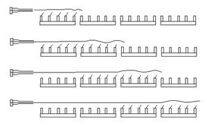 前一種形式的噴氣織機(jī)雖簡單,但因氣流在管道中仍不斷衰減,織機(jī)筘幅只能到190cm,故人們在筘座上增設(shè)了一系列輔助噴嘴,沿緯紗行進(jìn)方向相繼噴氣,補(bǔ)充高速氣流,實(shí)現(xiàn)接力引緯。
