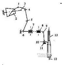 7-導(dǎo)紗器8-導(dǎo)紗鉤9-紆管10-主動錠桿11-被動錠桿