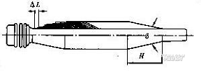 紆管的端部是一個錐體,錐頂角δ大,則退解阻力小,但易脫圈,一般棉織用紆管錐角為20~24°,絲織為12~13°。因此,紆子的卷繞相當于在錐形筒子上的短動程卷繞,緯紗每卷繞一個往復(fù)動程,在級升運動的作用下,導(dǎo)紗器向紆管的頂端移動一段距離,直至整個紆管繞滿紗線,紆子的卷繞結(jié)構(gòu)如圖5-5所示。