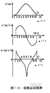 綜框在開始提升或下降至最低位置時,速度是突然變化的,此時加速度很大,會引起沖擊和振動。這是因為拉刀鉤取或脫離拉鉤時,已具有或還具有一定速度的緣故。