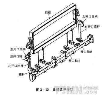 開口機構(gòu)是織機五大機構(gòu)之一,是形成織物所必需的重要機構(gòu)。它的任務(wù)是根據(jù)織物組織的要求,依次將穿入各頁綜框上的經(jīng)紗分成上下兩層以形成梭口,待緯紗引入后將梭口閉合,使經(jīng)、緯紗形成交織狀。