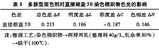 經(jīng)固色劑整理后的棉織物色光變化如表8所示.