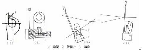 管道片噴氣引緯仍使用普通鋼筘(ordinary reed)進(jìn)行打緯,由許多管道片按一定的間隙扎制成的通道用于引導(dǎo)緯絲與氣流的通道。如圖2-18(3)所示,引緯時(shí),管道片2隨筘座3運(yùn)動(dòng)進(jìn)入梭口,引導(dǎo)緯絲與氣流。如圖2-18(4)所示,打緯時(shí),管道片2隨筘座3運(yùn)動(dòng)退出梭口。