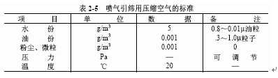 噴氣引緯使用的壓縮空氣必須是無水、無油,滿足噴氣引緯壓力和溫度要求的潔凈空氣,噴氣引緯用壓縮空氣的標(biāo)準(zhǔn)如表2-5所示。壓縮空氣中過量的水分、油分和雜質(zhì)對(duì)引緯系統(tǒng)及供氣管道會(huì)造成嚴(yán)重危害:機(jī)器及供氣管道銹蝕;供氣管道等粘著灰塵等異物,使管內(nèi)空氣阻力增加,壓力損失增加,嚴(yán)重時(shí)會(huì)逐漸堵塞輔助噴嘴的出氣小孔或使閥門失靈,影響噴氣引緯的正常進(jìn)行;污染鋼筘,使引緯狀態(tài)惡化,引緯效率下降,影響織物質(zhì)量。過量的油分還會(huì)污染織物,影響工作環(huán)境。