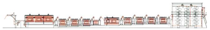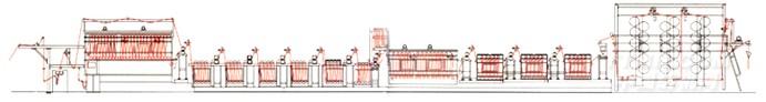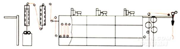 二、工藝流程:放卷→進(jìn)市架→上膠機(jī)→烘房→冷水冷卻→卷裝機(jī)