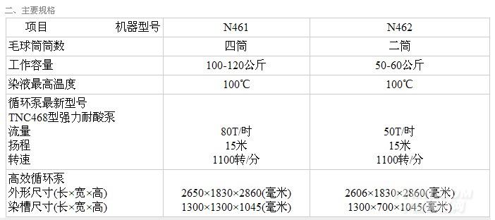 二.絞線染色機(jī)的規(guī)格和性能