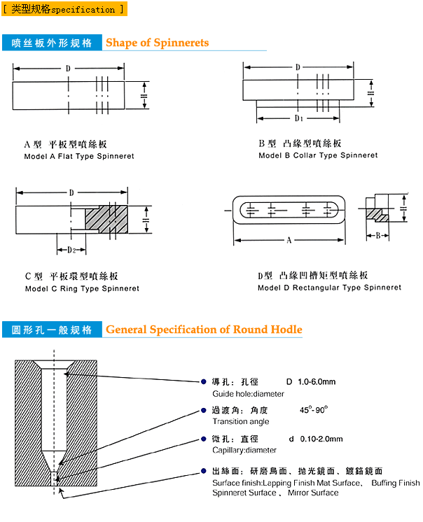 備注: 本公司生產(chǎn)的噴絲板和化纖紡絲組件采用進(jìn)口日本的不銹鋼SUS630、SUS431和SUS316。