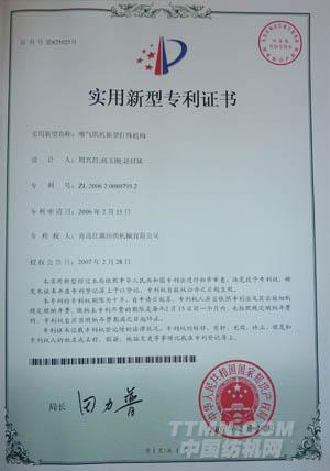 噴氣織機(jī)產(chǎn)品質(zhì)量合格證書                                            粗紗機(jī)產(chǎn)品質(zhì)量合格證書