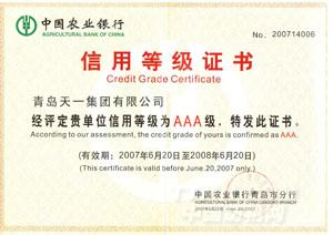 FA471粗紗機(jī)高新產(chǎn)品認(rèn)定書                                                信用等級(jí)證書
