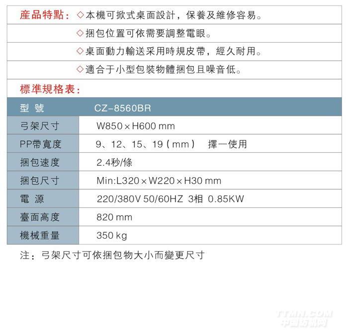 您所在的位置:紡機網(wǎng) >> 正洲包裝機械(東莞)有限公司 >> CZ-8560BR 無人化桌面時規(guī)皮帶驅動打包機