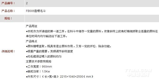 您所在的位置:紡機(jī)網(wǎng) >> 青島紡織機(jī)械股份有限公司 >> FB006型喂毛斗