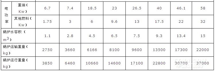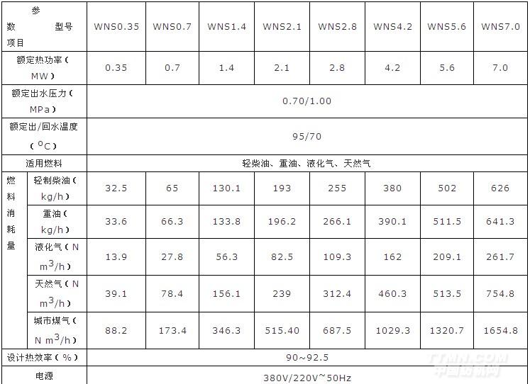 WNS系列承壓熱水鍋爐性能參數(shù)表
