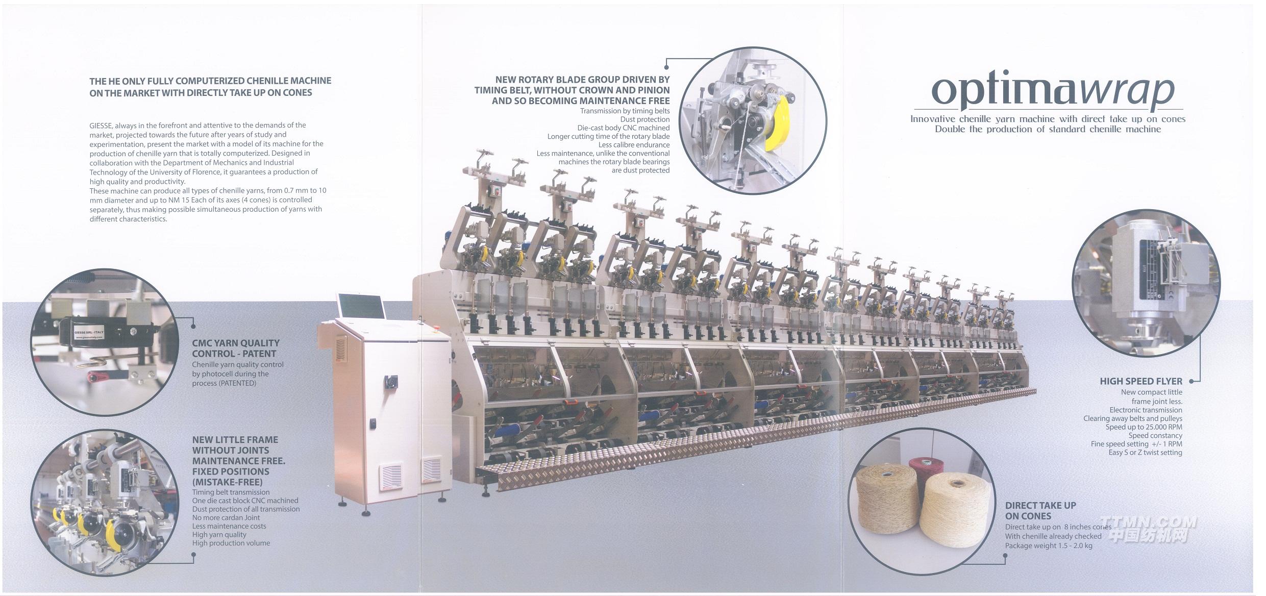 OPTMA WRAP 是市場(chǎng)上唯一的全電腦控制、直接筒子成形雪尼爾紡紗機(jī)。