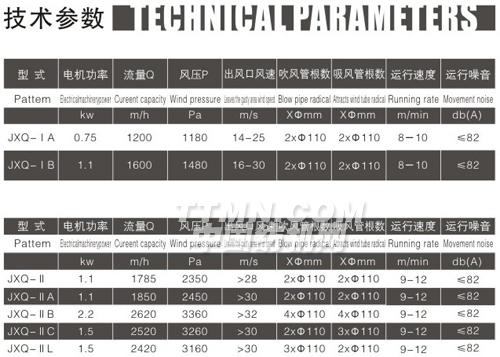 產(chǎn)品型式:JXQ-I為龍骨式蝸輪副傳動巡回吹吸清潔機(jī)    JXQ-II為龍帶傳動巡回吹吸清潔機(jī)