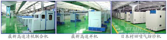 公司擁有二十余臺(tái)日本村田噴氣紡紗機(jī)、高產(chǎn)清梳聯(lián)合機(jī)、高速并條機(jī)等全套先進(jìn)的紡紗設(shè)備,常年批量生產(chǎn)多種綠色、生態(tài)、環(huán)保的新型噴氣紡紗線。