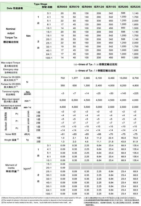 IBR 系列精密行星減速機技術(shù)參數(shù)