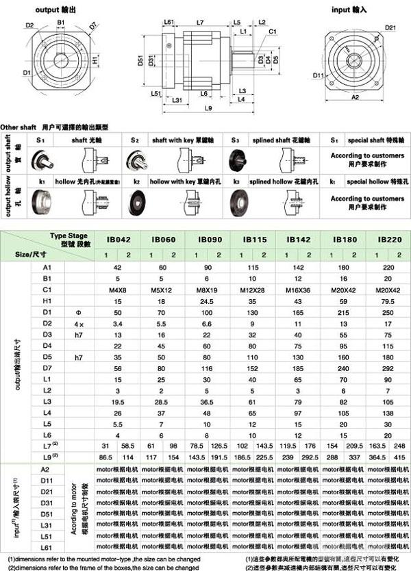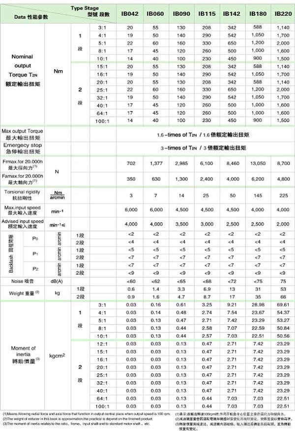 IB 系列精密行星減速機(jī)技術(shù)參數(shù)