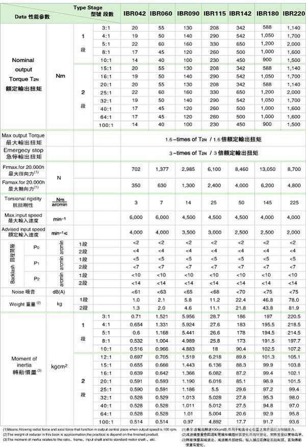 IBR 系列精密行星減速機(jī)技術(shù)參數(shù)