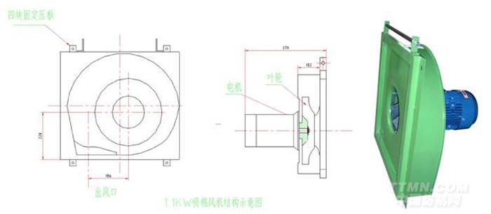 ②1.5KW電機,所配的葉片直徑為370mm,風量1600立方/分鐘,負壓600-900帕,配套細紗機錠數(shù)有408、420和456錠。