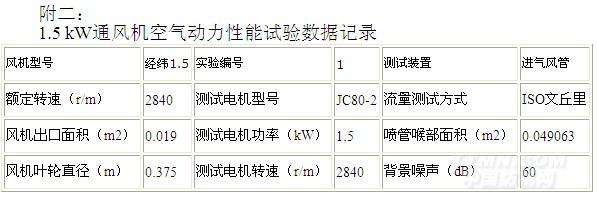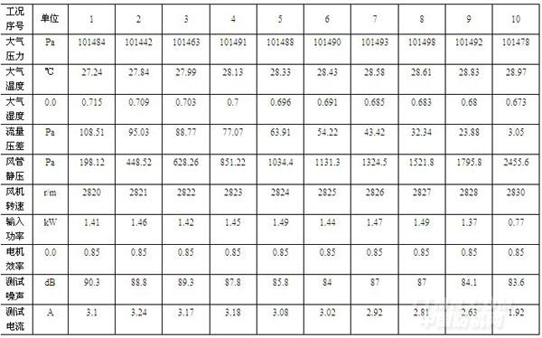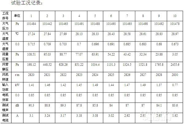 1.1KW通風機空氣動力性能試驗數(shù)據(jù)記錄
