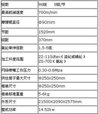 用途:該機(jī)可以紡制常規(guī)滌綸低彈絲和氨綸進(jìn)行空氣包覆,也可以紡制錦綸中彈絲和氨綸進(jìn)行空氣包覆等,優(yōu)化了絲路,滿足用戶紡制細(xì)旦絲,多孔絲和氨綸進(jìn)行空氣包覆的要求。