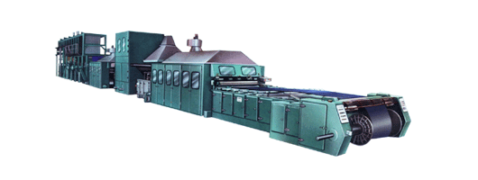2、 “1代6”環(huán)狀染色具有占地小,動力及化學物料消耗少,由于多層軋壓均勻,色牢度堅牢而無色差,適應品種廣,更換品種方便等優(yōu)點。