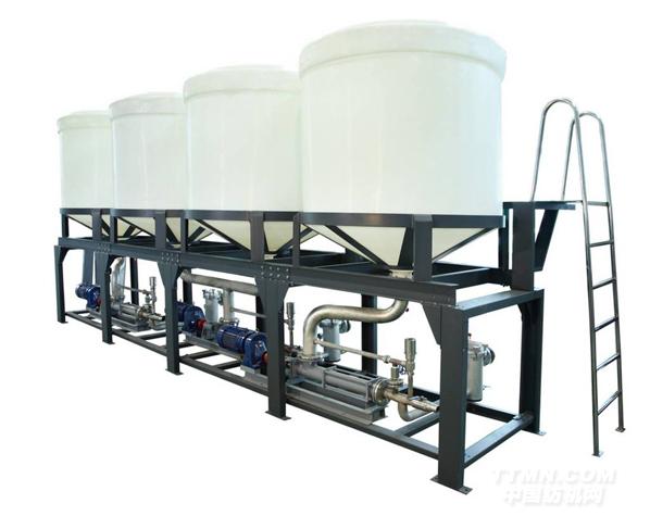 糊料準(zhǔn)備系統(tǒng)根據(jù)印花糊料的工藝要求,通過工控機(jī)和PLC控制,進(jìn)行自動加水、自動攪拌、管路過濾輸送及配料自動稱量和粘度控制,以保證印花色漿調(diào)制的穩(wěn)定性和高效率。