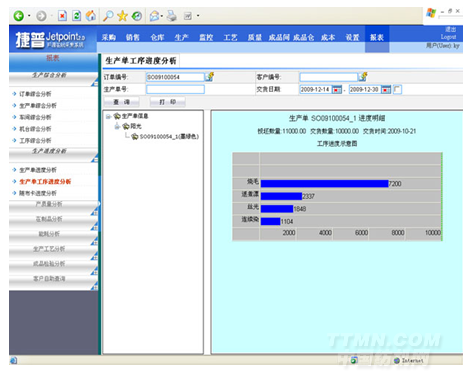 2)客戶自助終端——在樣品陳列室或客戶接待室,設(shè)置客戶自助查詢終端;或者在企業(yè)網(wǎng)站上開設(shè)查詢頁面,客戶可以通過自助查詢終端或互聯(lián)網(wǎng)查詢自己訂單的實時生產(chǎn)進度、查看成品的驗布報告、查看歷史訂單等。