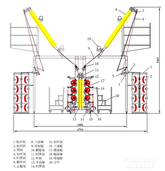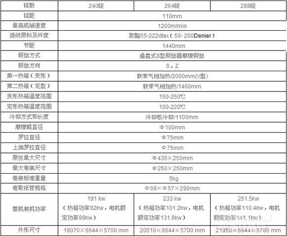 該機主要是將POY原絲(聚酯預(yù)取向絲),通過拉伸和假捻變形加工成具有低彈、高彈性能的假捻變形絲(DTY彈力絲),若在設(shè)備上選擇增加網(wǎng)絡(luò)部件還可以進行網(wǎng)絡(luò)絲的加工。