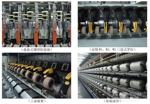 3、采用疊盤式8型假捻器,假捻效果更佳,龍帶驅(qū)動假捻裝置,速度控制穩(wěn)定可靠,W1、W2、W3三道羅拉均采用皮輥式結(jié)構(gòu),牽伸準(zhǔn)確,張力均勻