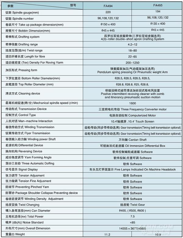 - [產(chǎn)品]-->FB494/FB493毛紡懸錠粗紗機(jī)