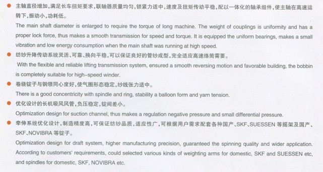 ·可選配后羅拉同步檢測(cè)裝置,保證在紡紗過(guò)程中紗線(xiàn)的質(zhì)量。