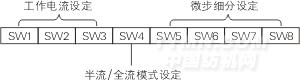 SW1-SW3 三個撥碼開關來設定驅動器輸出電流,其輸出電流共有8檔。具體輸出電流的設定,請驅動器面版圖說明。