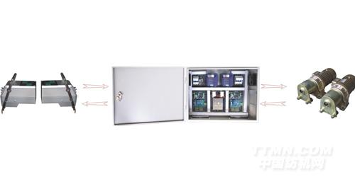 通過(guò)探測(cè)傳感器與控制板的通訊傳輸,由控制板根據(jù)探測(cè)傳感器的位移信號(hào),輸出或大或小、或正或負(fù)的模擬量信號(hào),控制變頻器的正反運(yùn)轉(zhuǎn)和輸出大小電壓,從而控制電機(jī)帶動(dòng)擺臂,精確控制布邊的納入,準(zhǔn)確追蹤。
