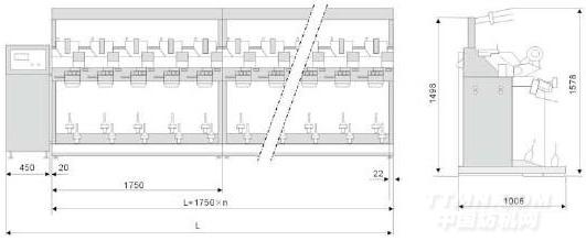 倍捻機(jī)的前道設(shè)備,把不同的規(guī)格的原料筒子并合成可在倍捻機(jī)上加工的平行筒子,并合提供氨綸絲與其他紗線的并合功能。
