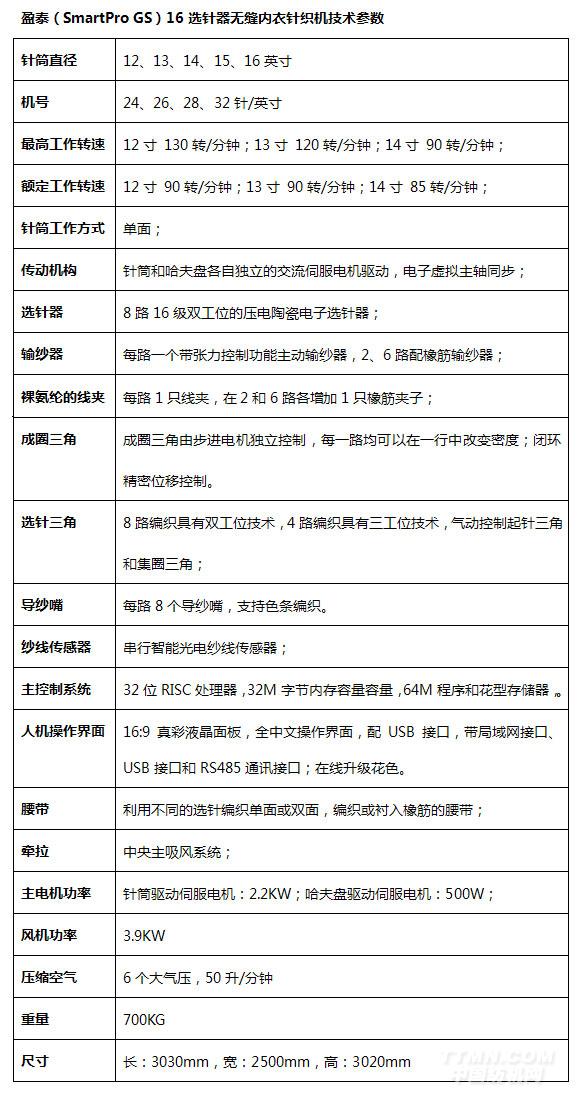 適宜多色彩、多組織的盈泰(SmartPro GS)16選針器無縫內(nèi)衣針織機