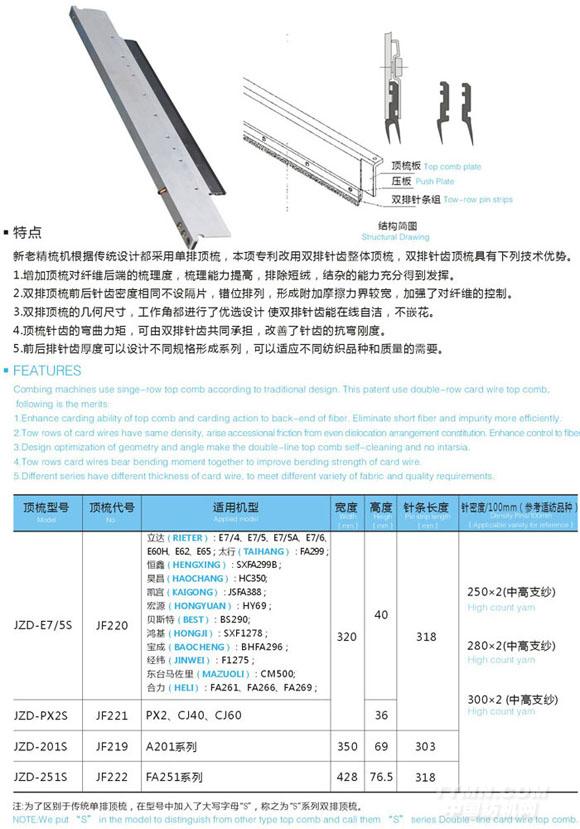 您所在的位置:紡機(jī)網(wǎng) >> 浙江錦峰紡織機(jī)械有限公司 >> 雙排整體頂梳(專利)