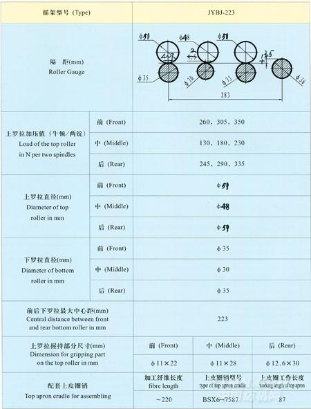 BYI-223型毛紡緊密紡板簧搖架主要技術(shù)參數(shù)