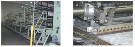 本機型采用了3種以上角度的鋪設器,可以變化角度緯紗裝置分別鋪設不同角度的緯紗曾,卷取機構采用我公司的專利部件,使在卷曲過程中織物組織穩(wěn)定、收卷整齊。