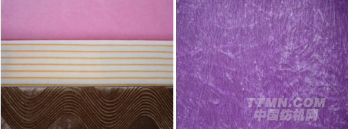 本機(jī)可配置多種規(guī)格的沉降片(毛高1.8~3.2 mm),生產(chǎn)多款反包毛巾布。也可選擇採用上菱角的雙軌道設(shè)計,更方便地把持好沉降片的運(yùn)動,使織物毛紗被裹(?)更平整。經(jīng)抓毛、剪毛、磨毛、壓花等後處理工序,可製成天鵝絨、不倒絨、電子絲絨等,增配氨綸裝置,可編織高彈性反包毛巾布料。